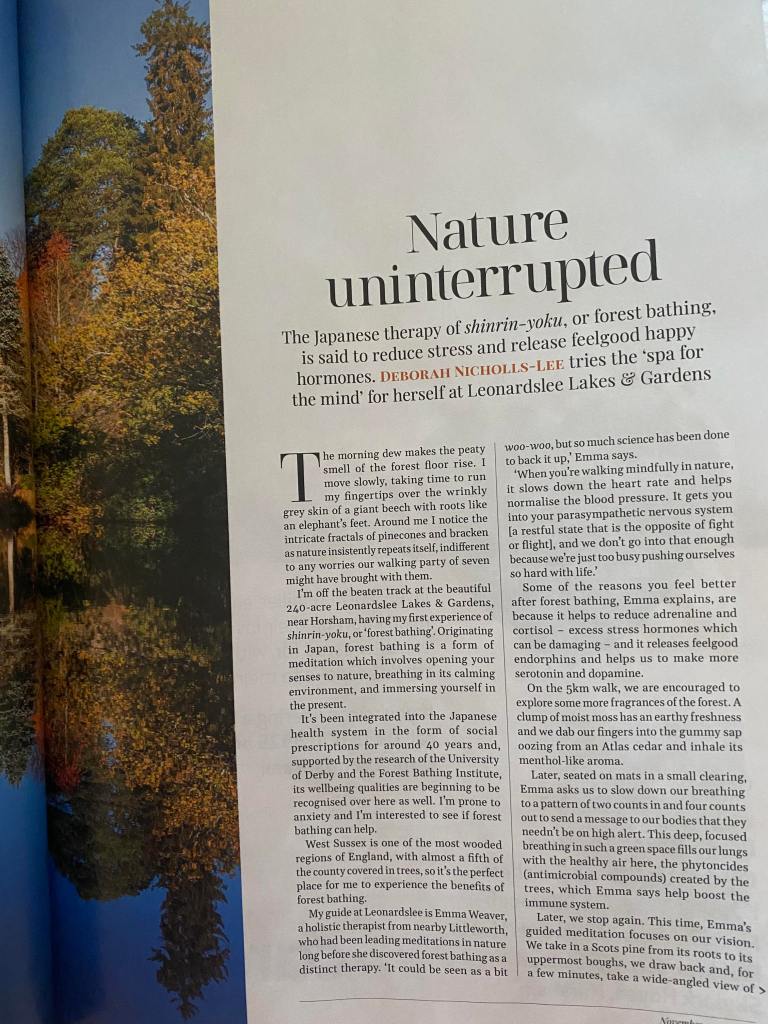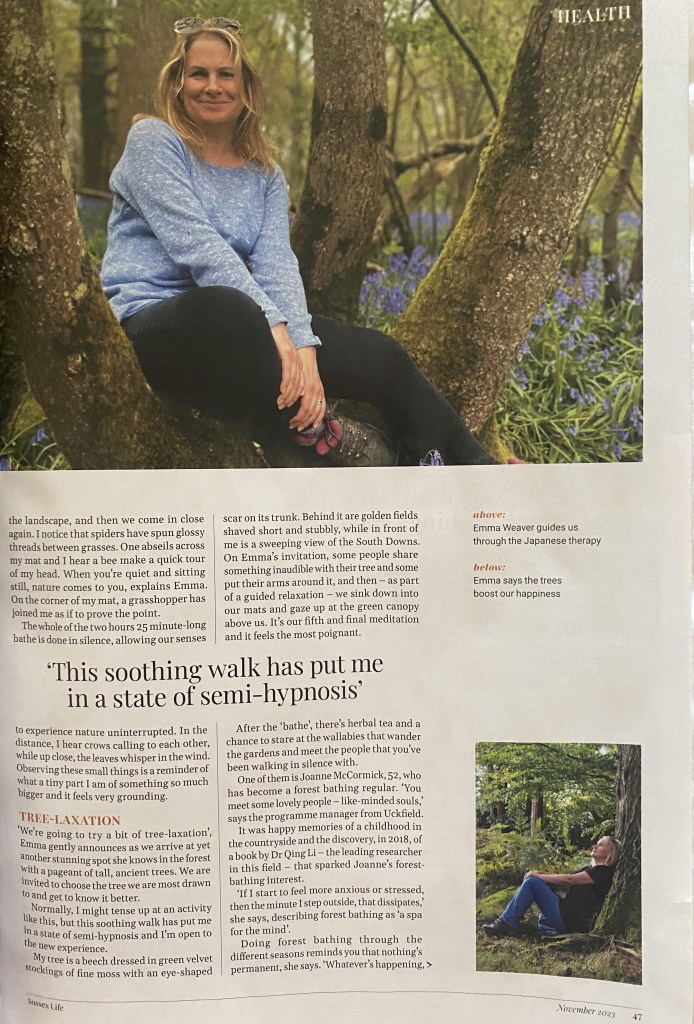 Personal essay/feature written on forest bathing for November 2023 issue of Sussex Life magazine