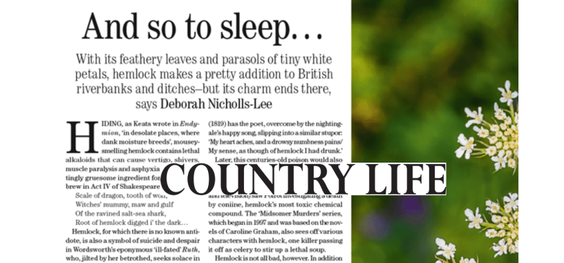 Nature, Rural life And so to sleep… Date: March 6, 2024Author: Deborah Nicholls-Lee Feature on hemlock for Country Life magazine Credit: Country Life Magazine, issue 6/3/24 countrylife.co.uk CLI448.hemlockDownload Share this: Click to share on X (Opens in new window) X Click to share on Facebook (Opens in new window) Facebook Like Loading...
