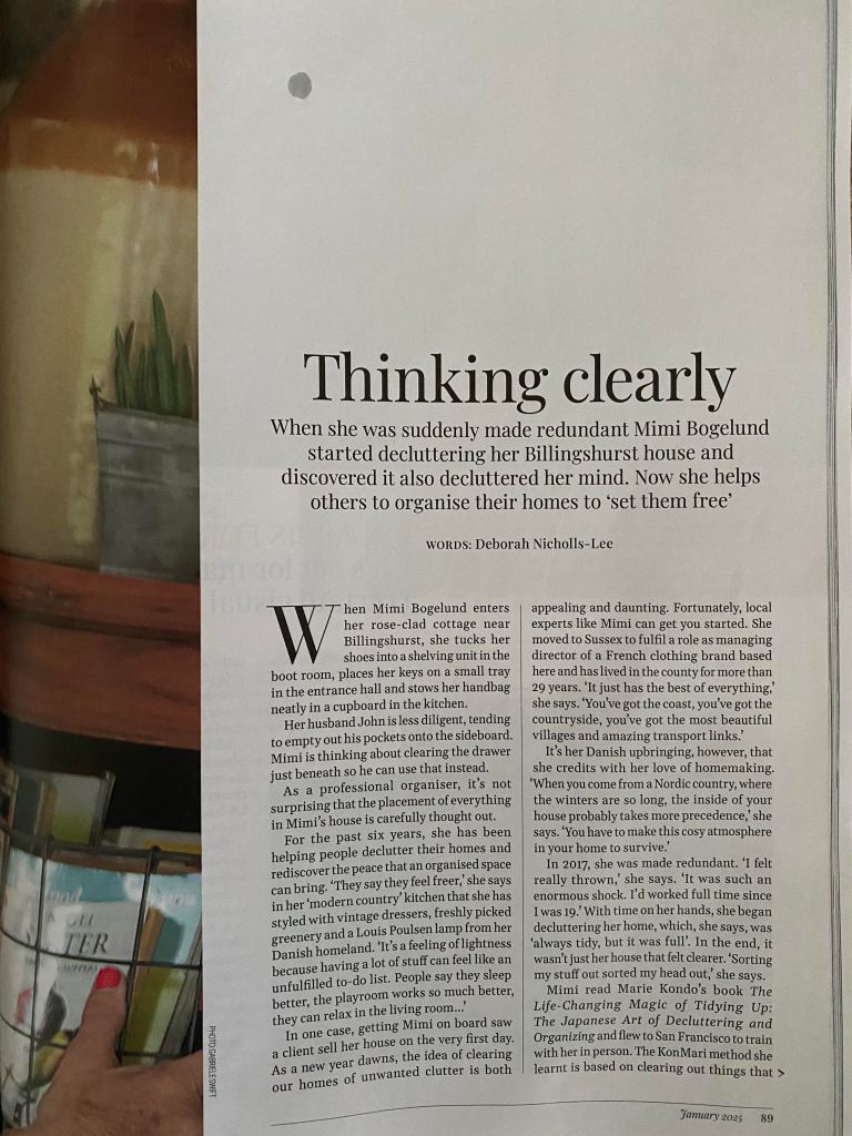 Business, Health and Wellbeing, Interior Design Thinking Clearly Date: February 5, 2025Author: Deborah Nicholls-Lee Feature written for Sussex Life Magazine on decluttering expert Mimi Bogelund Share this: Click to share on X (Opens in new window) X Click to share on Facebook (Opens in new window) Facebook Like Loading...