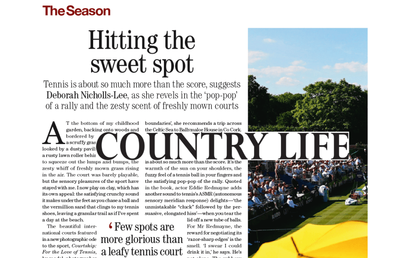 Feature written for Country Life magazine on a new book by Laura Bailey and Mark Arrigo, Courtship: For the Love of Tennis, published by Rizzoli