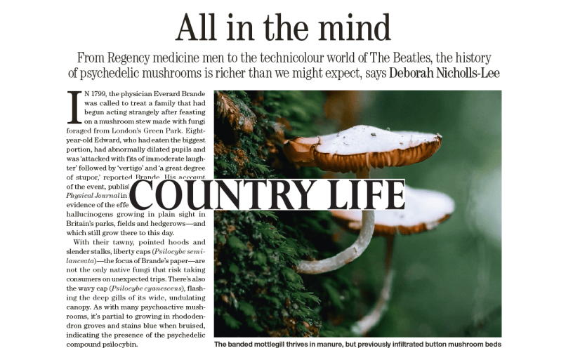 Feature written for Country Life Magazine on hallucinogens native to the UK.