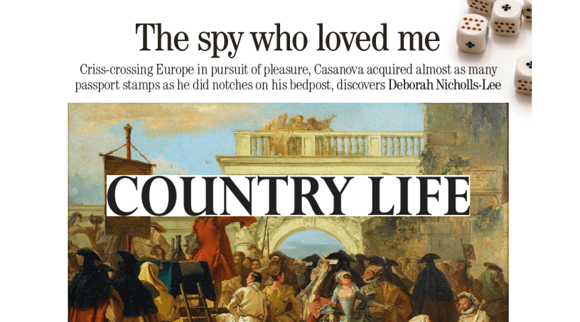 Feature written for the Country Life International section of Country Life Magazine on Casanova, who was born 300 years ago.