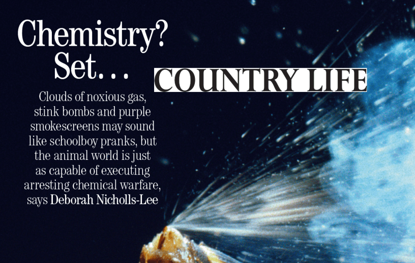Nature, Rural life Chemistry? Set… Date: February 18, 2026Author: Deborah Nicholls-Lee Feature written for Country Life about British wildlife that use chemical warfare Issue: 4 February 2026 www.countrylife.co.uk CLI546.nature_chemical_warfare_lowresDownload Share this: Share on X (Opens in new window) X Share on Facebook (Opens in new window) Facebook Like Loading...